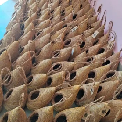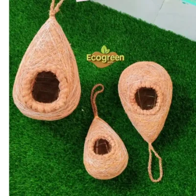 এই মনোরম বার্ড নেস্টটি তৈরি করা হয়েছে ১০০% প্রাকৃতিক নারকেলের আঁশ (Coconut Fiber) দিয়ে, যা সম্পূর্ণ পরিবেশবান্ধব, বায়ো-ডিগ্রেডেবল এবং পাখিদের জন্য একদম নিরাপদ। এতে কোনো ক্ষতিকর উপাদান নেই — তাই পাখিরা এখানে স্বাচ্ছন্দ্যে থাকতে পারে, ঘুমাতে পারে এবং ডিম পাড়তে পারে।